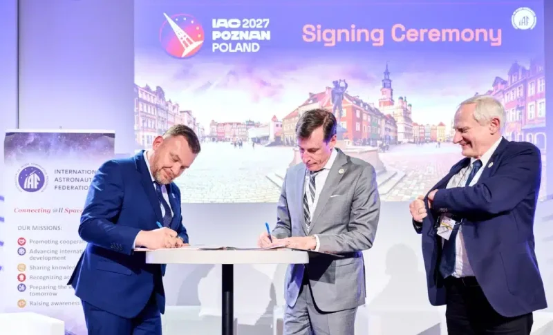Paris, 2 April 2025. – In the French capital, at the headquarters of the International Astronautical Federation (IAF), the contract for the organisation of the 78th International Astronautical Congress (IAC), to be held in Poznan in 2027, was officially concluded. In the presence of 300 delegates from around the world, the agreement was signed by Clay Mowry, president of the IAF Federation,...